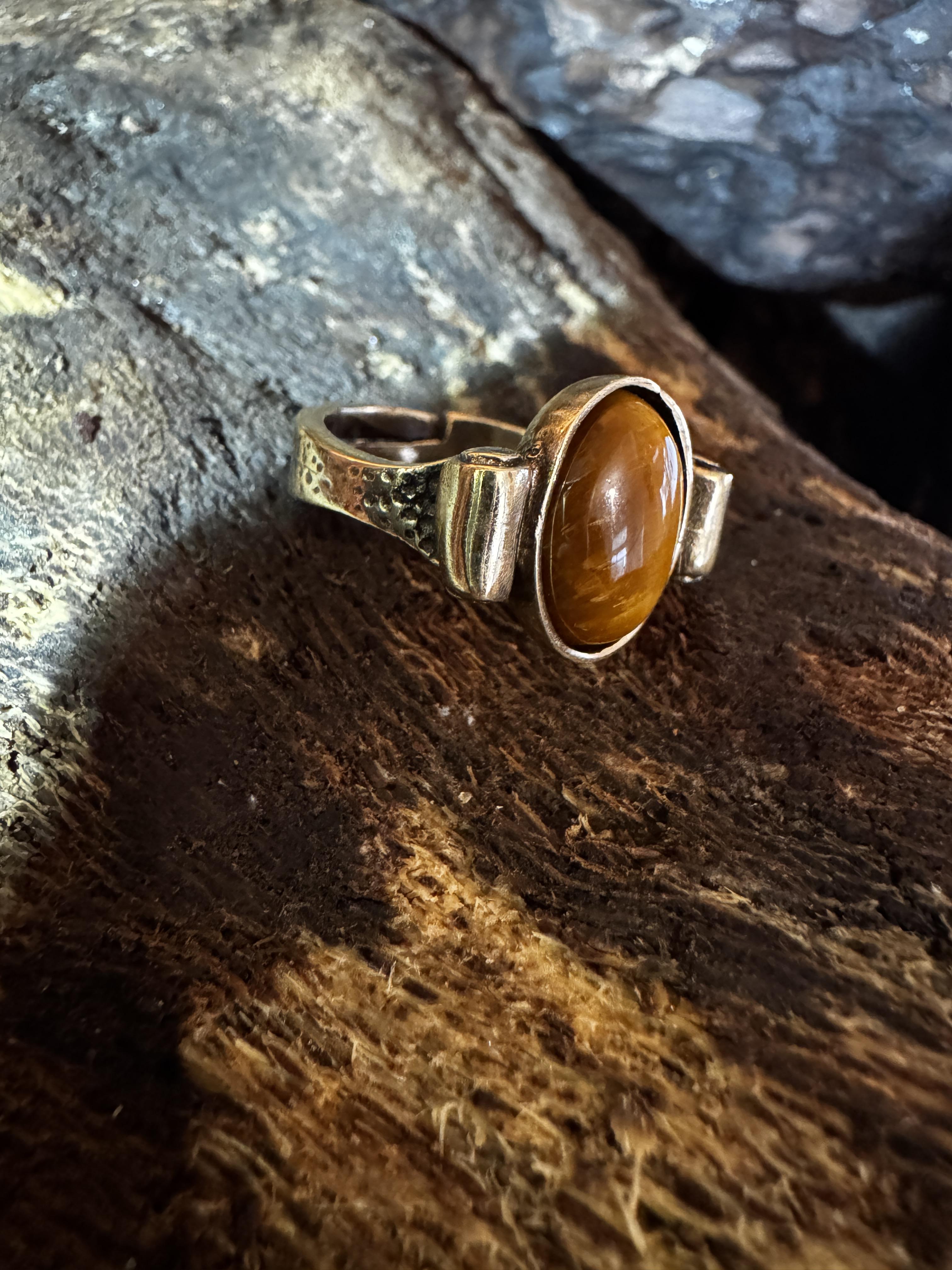 Der Armreif ist offen und flexibel anpassbar, während der Ring größenverstellbar gearbeitet ist – für optimalen Tragekomfort und perfekte Passform. Beide Schmuckstücke sind handgefertigt und überzeugen durch ihren natürlichen Boho- und Vintage-Look.