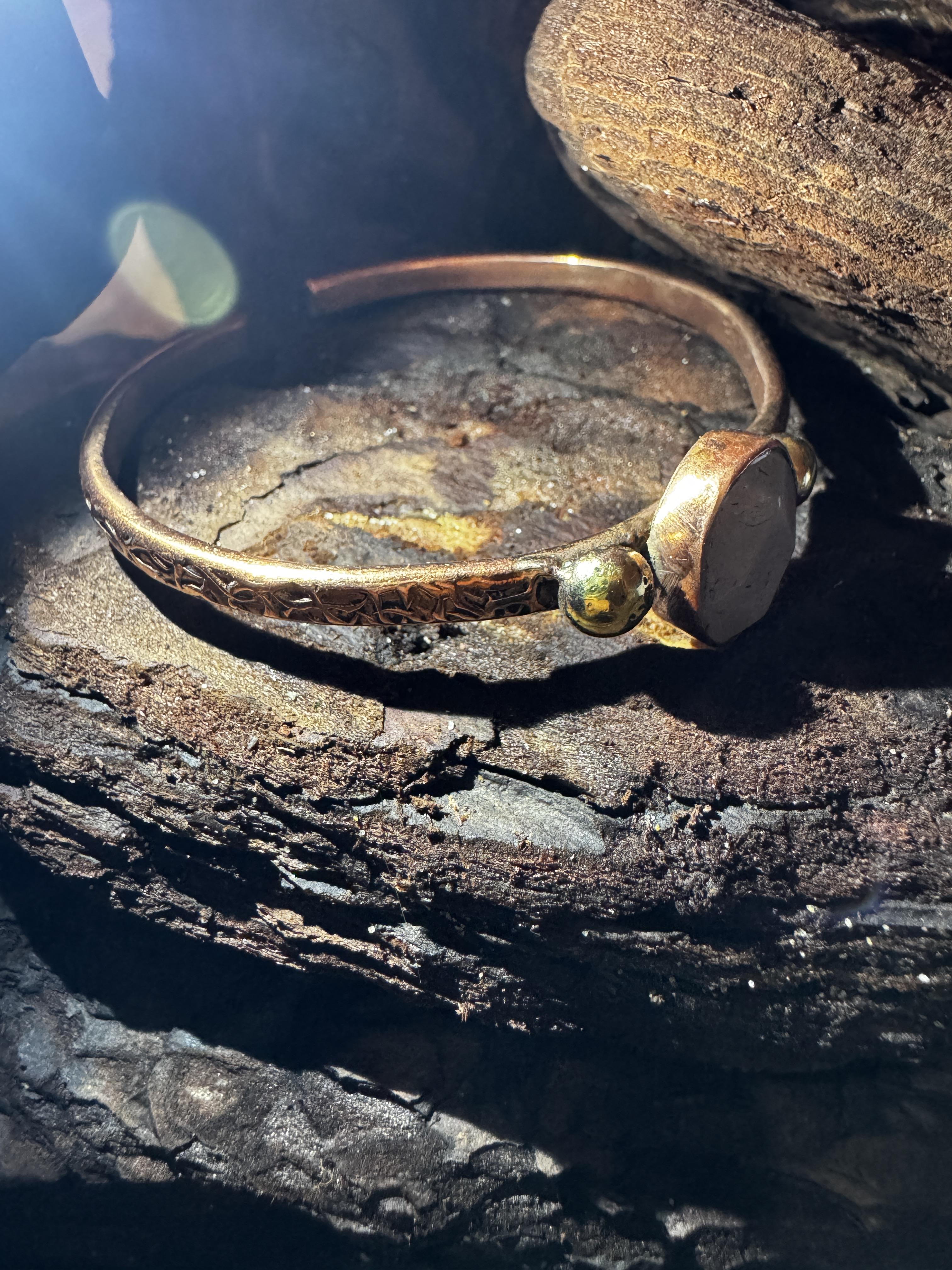 Dieser handgefertigte Armreif aus massivem Kupfer vereint natürliche Materialien mit zeitlosem Design. Im Mittelpunkt steht ein runder echter Rosenquarz, dessen sanfter Rosaton dem Schmuckstück eine ruhige, feminine und elegante Ausstrahlung verleiht.