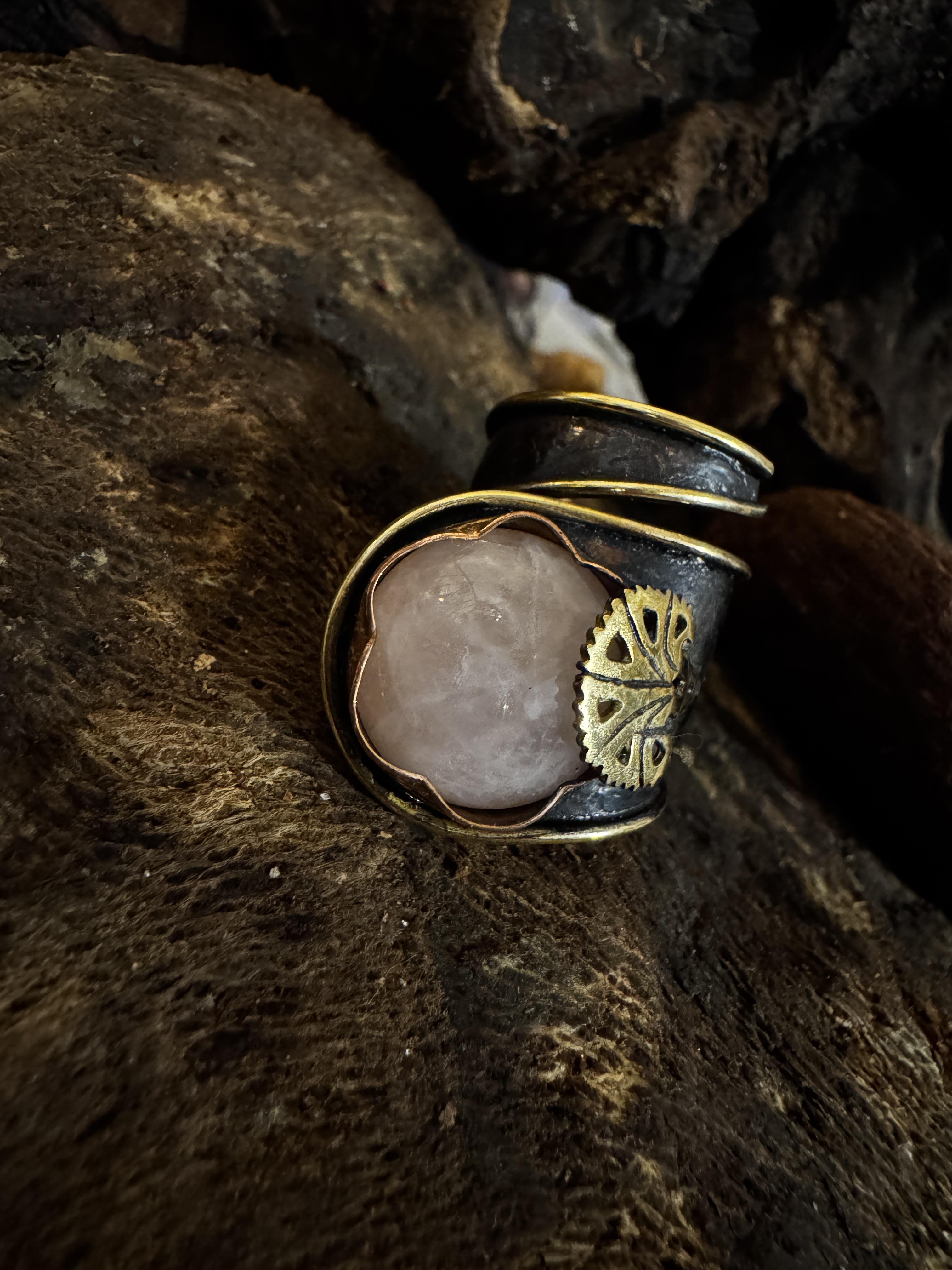 Dieses liebevoll handgefertigte Schmuckset aus echtem Kupfer und Rosenquarz besteht aus einem passenden Ring und Armband und verbindet natürliche Materialien mit zeitlosem, warmem Design. Der zart rosafarbene Rosenquarz steht für Liebe, Harmonie und Herzenskraft und macht das Set zu einem besonderen Begleiter im Alltag oder zu einem bedeutungsvollen Geschenk.