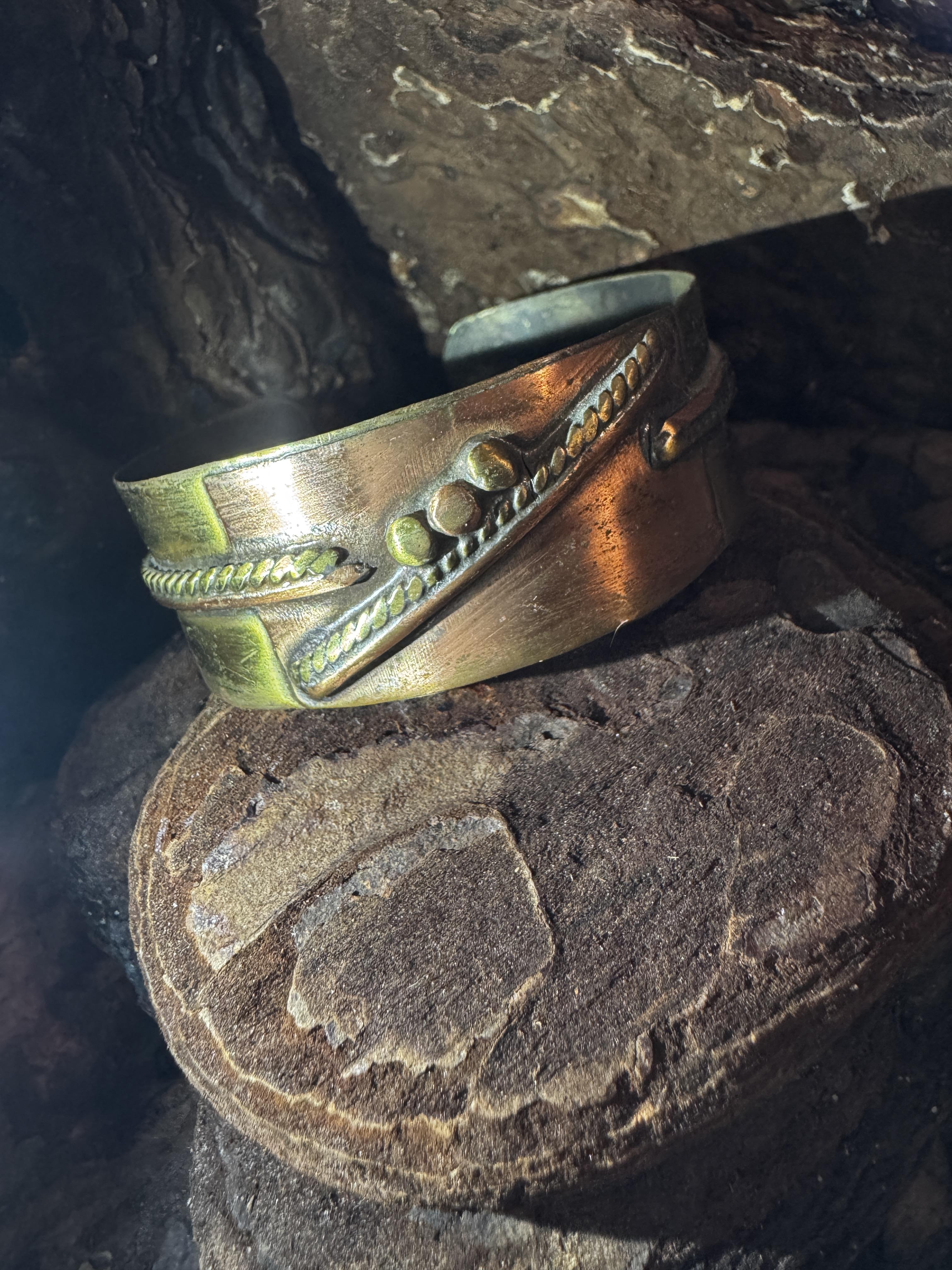 Kupfer und Messing stehen traditionell für Wärme, Erdung und Natürlichkeit. Die Kombination beider Metalle symbolisiert Balance und Kraft und passt perfekt zu einem naturverbundenen, individuellen Stil.